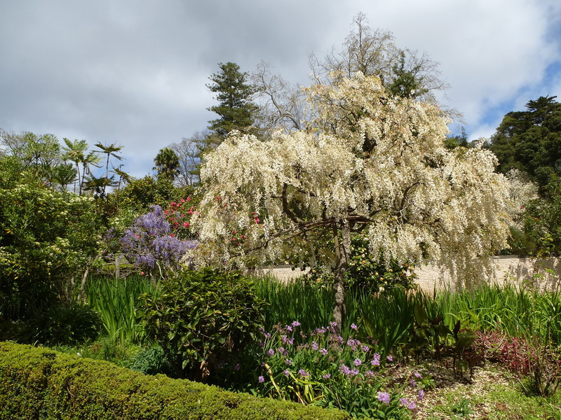 Eine besondere Entdeckung war für uns im ersten Jahr der private Herrschaftsgarten der Familie Blandy, auch ´Blandy´s Gardens´ oder ´Palheiro Gardens´ genannt. Sein alter - teils über 30 m hoher - Baumbestand aus Araukarien, Eisenhölzern, Tulpen- und Kampferbäumen strahlt in Kombination mit mitteleuropäischen Gehölzen und der eingebetteten subtropischen Kapflora mit Schmuck- und Rachenlilie, Aloe und Zuckerbusch, Strelitzie und Korallenbaum einen enormen Reiz auf die Gartenbesucher aus. Kein Wunder, dass die gut 12 ha große Parklandschaft mit ihrer üppigen Flora als eine der schönsten Gartenanlagen Madeiras gilt.