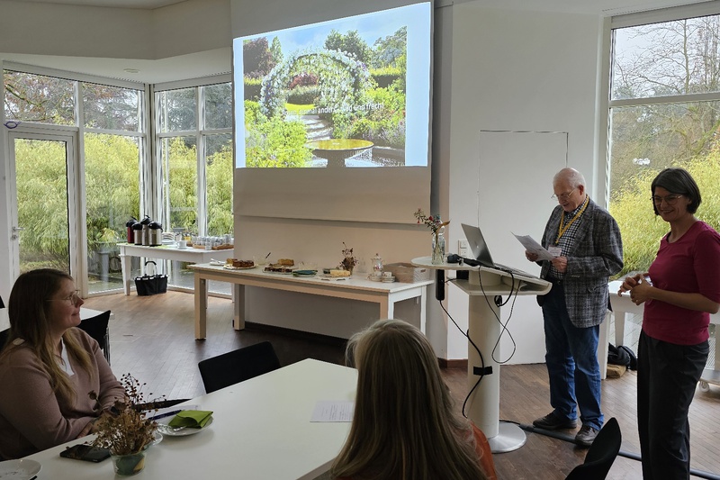 Innovative Rosenbeete standen im Mittelpunkt des Vortrags von Dorothea Steffen am Samstag, 15. November 2025, im Balettzentrum. Hermann Kopp begrüßte die Referentin und stellte sie vor als Gartenplanerin aus Essen und Präsidentin der “Gesellschaft der Staudenfreunde e.V.”