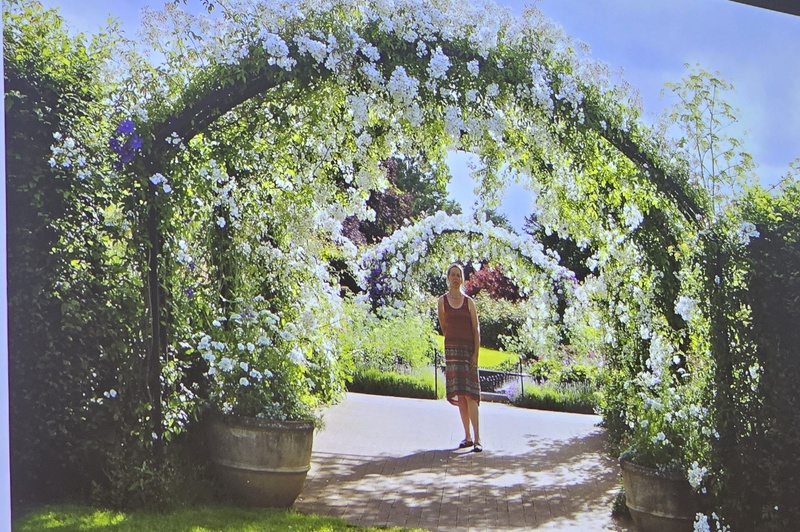Aus vielen Gartenreisen im In- und Ausland brachte die Referentin interessante Bilder mit, die z.B. sehenswerte Gärten in Schottland, Italien, den Vogesen oder auf Madeira zeigten: Je nach dem vorherrschenden Klima werden dort Rosen mit Begleitpflanzen kombiniert, die in unseren Breitengraden eher unüblich sind.